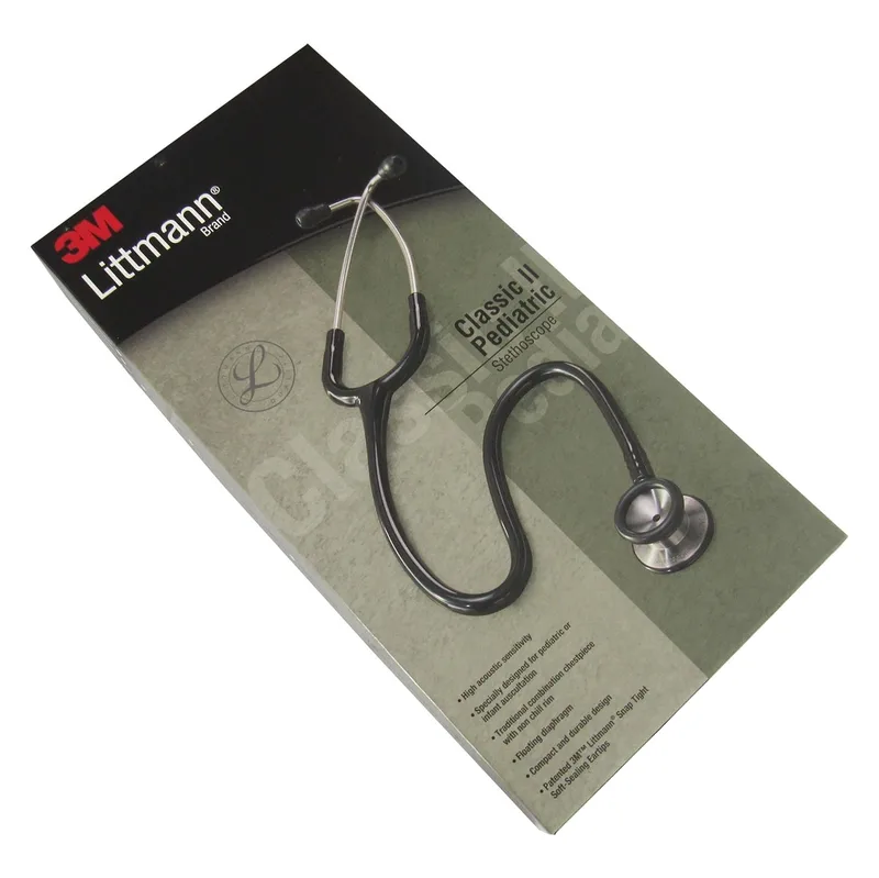 The 3M Littmann Classic II Paediatric Stethoscope is a medical instrument designed for auscultation in pediatric patients. It is constructed with a focus on acoustic performance and patient comfort, building upon established Littmann stethoscope designs. This device facilitates the listening to internal body sounds, such as heartbeats, lung sounds, and bowel sounds, which are crucial for physical assessment, monitoring, and diagnostic procedures in younger individuals.