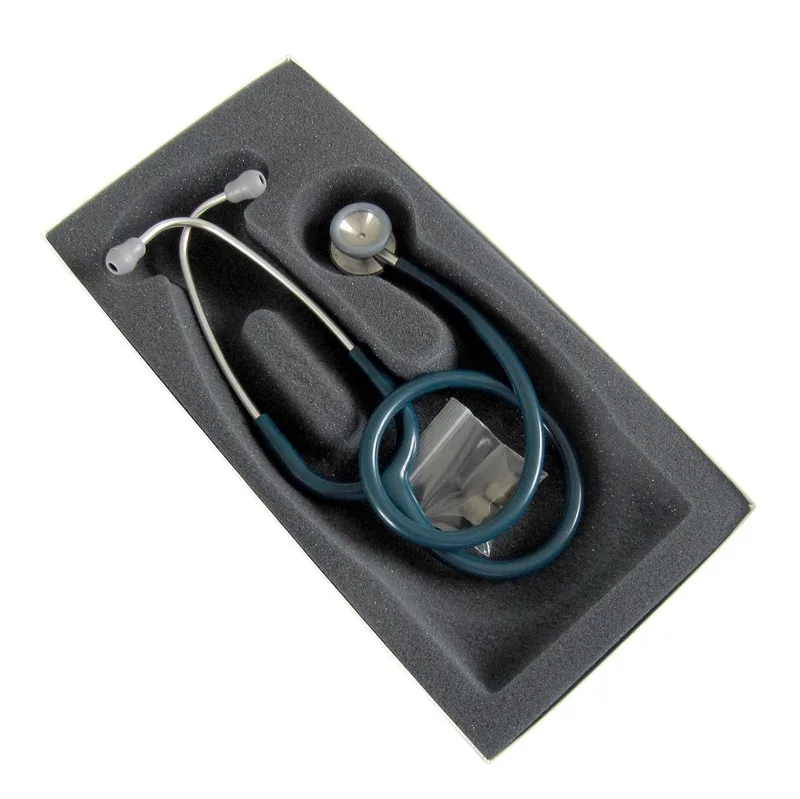 The non-chill rim on the chestpiece enhances patient comfort during examinations, reducing potential discomfort. The inclusion of soft-sealing eartips contributes to both an excellent acoustic seal and a comfortable user experience. The chestpiece itself is precision-machined from stainless steel into a less angular, aesthetically pleasing form.