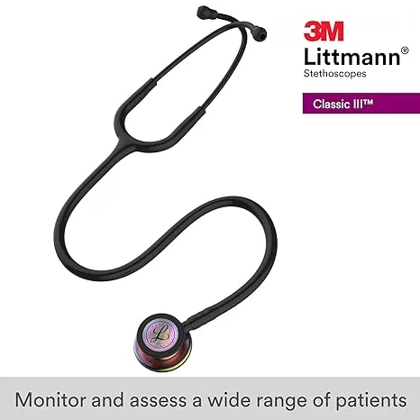 Typical applications for the 3M Littmann Classic III Stethoscope involve routine physical examinations, patient assessment, and monitoring of vital signs. This includes listening to heart sounds to identify murmurs, gallops, or other abnormalities; assessing lung sounds for signs of conditions such as pneumonia, asthma, or COPD; and auscultating bowel sounds to evaluate gastrointestinal function. It is also a critical component in taking manual blood pressure readings.