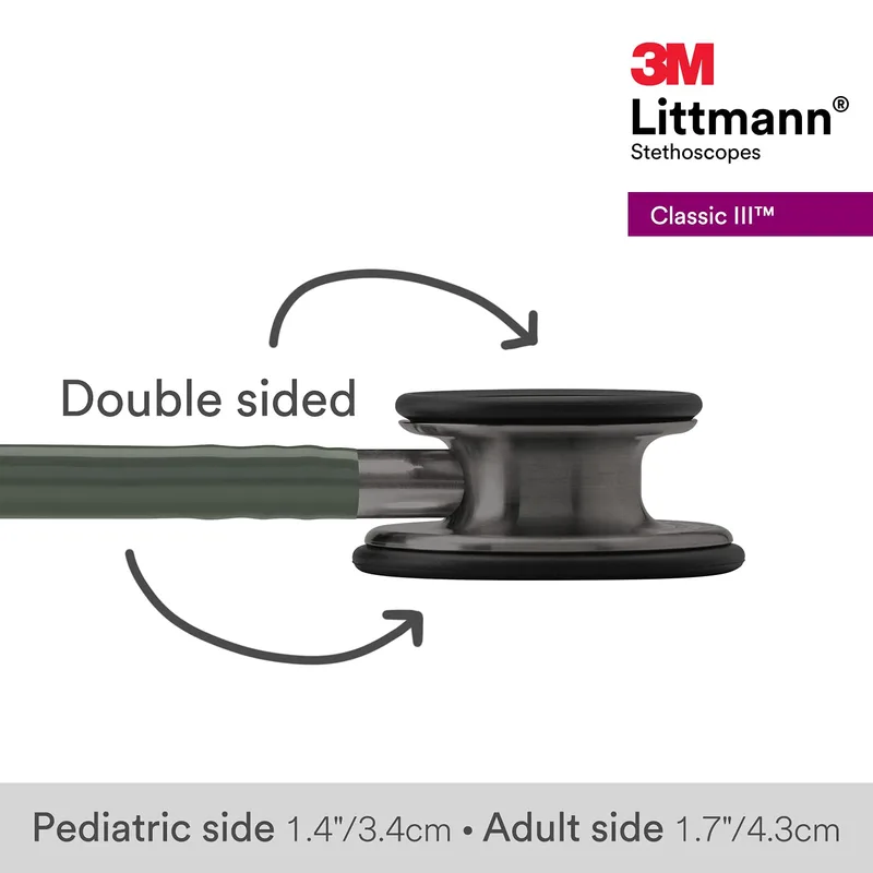 This acoustic medical instrument is designed for auscultation, enabling healthcare professionals to detect and analyze body sounds. It features a dual-sided chestpiece with tunable diaphragm technology, a 3M invention, which allows for the differentiation of low and high-frequency sounds by adjusting pressure. This functionality facilitates efficient patient assessment by enabling clinicians to focus on specific sound ranges without needing to switch between different components.