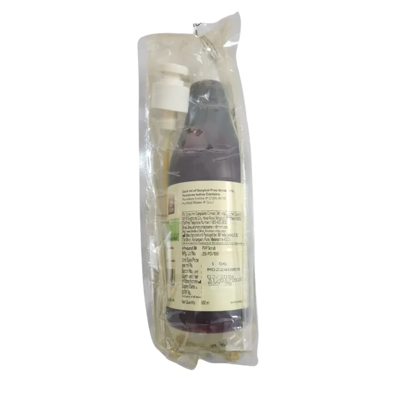 The mechanism of action of this surgical scrub relies on the release of free iodine from the Povidone-Iodine complex. This free iodine is a potent oxidizing agent that reacts with essential cellular components of microorganisms, such as enzymes and proteins, leading to their denaturation and cell death. The 7.