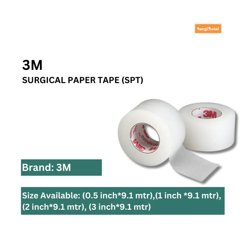 This product is a microporous surgical paper tape designed for a variety of medical applications. It is constructed from a non-woven rayon backing material, offering a breathable and gentle interface with the skin. The tape features a hypoallergenic adhesive, making it suitable for individuals with sensitive skin or latex allergies.
