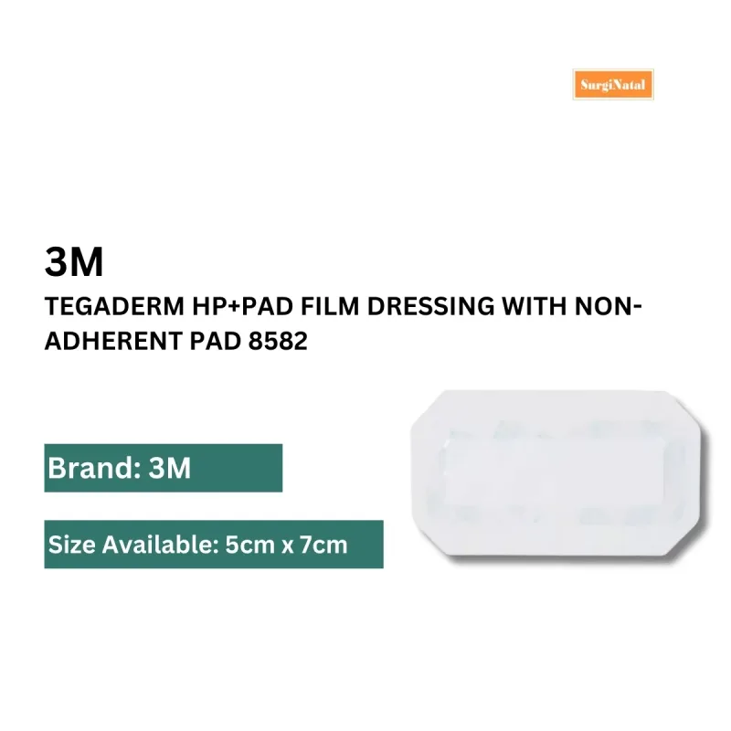 The 3M Tegaderm HP+Pad Film Dressing 8582 is a sterile, medical-grade wound care product designed for the management of various types of wounds. It combines a breathable, waterproof film with a non-adherent absorbent pad, creating an optimal environment for healing. The dressing is constructed from hypoallergenic, latex-free materials, making it suitable for individuals with sensitive skin or latex allergies.