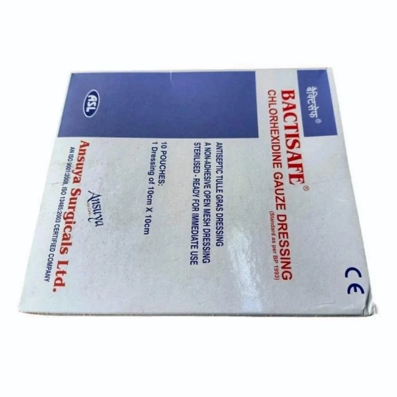 Key features of this gauze dressing include its antimicrobial properties, derived from the 0.5% chlorhexidine acetate impregnation. The 10x10 cm dimensions provide adequate coverage for moderate-sized wounds.