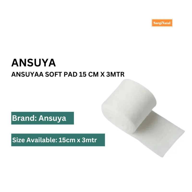 The Ansuya Soft Pad is a medical dressing material designed to provide a protective layer between a patient's skin and external dressings, such as casts or bandages. Its primary function is to offer cushioning and absorb moisture, thereby enhancing patient comfort and contributing to skin integrity during periods of immobilization or wound management. The material is composed of natural cellulose fibers, selected for their inherent softness, breathability, and absorbency.