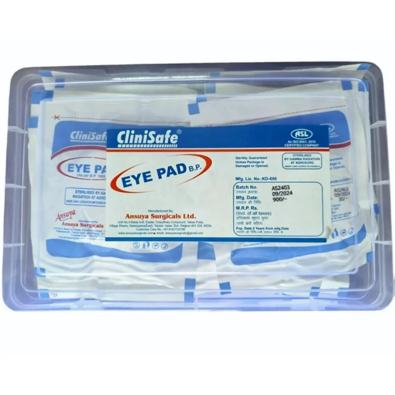 The Clinisafe Eye Pad is a sterile medical dressing designed for ocular protection and wound management. It is constructed from a non-adherent absorbent overwrap material, which is intended to facilitate dressing changes by minimizing adhesion to the wound surface. This characteristic aims to reduce patient discomfort and the potential for disrupting the healing tissue during routine care.