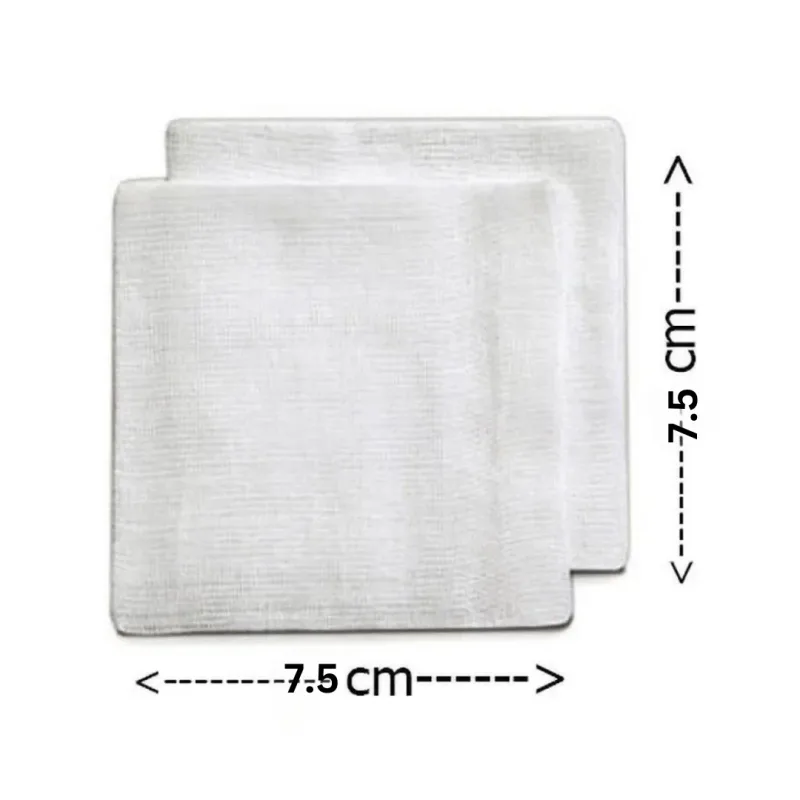 5cm, providing a practical size for various uses. These swabs are manufactured from fine yarn cotton, processed to be bleached with hydrogen peroxide, resulting in a white, absorbent material. The primary function of these gauze swabs is to facilitate effective wound care by offering a sterile and absorbent medium for cleaning, dressing, and managing exudate.