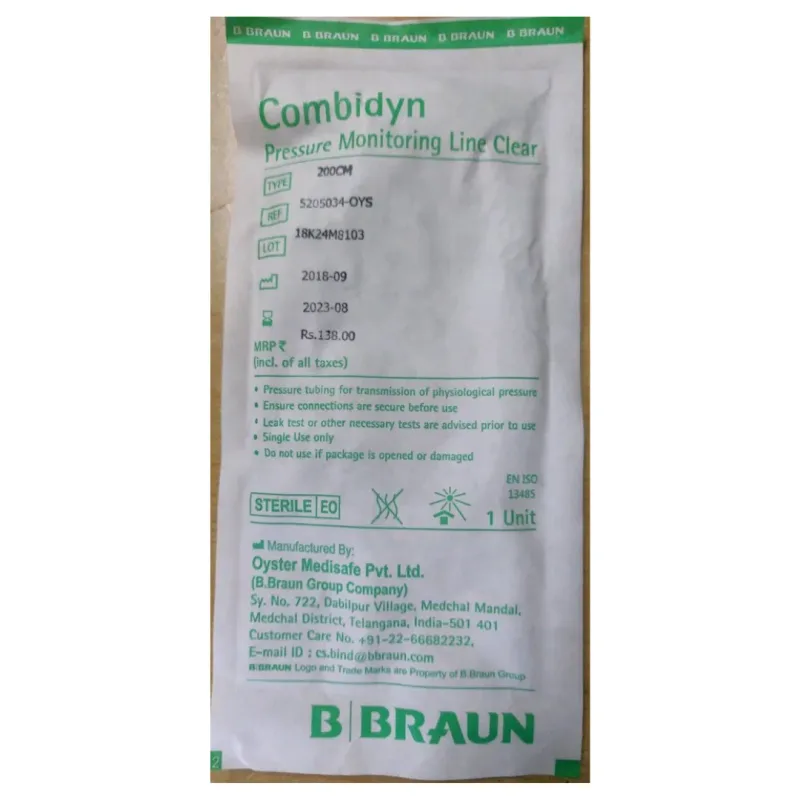 The B Braun Combidyn Pressure Monitoring Line, also referred to as the PMO Line, is a medical device engineered for the precise measurement of invasive physiological pressures within a patient. This system facilitates the transmission of pressure data from the patient's vascular access point to an external monitoring device, ensuring continuous and accurate readings. Its design is intended for use in environments where vigilant hemodynamic assessment is critical, such as intensive care units, surgical suites, and emergency departments.
