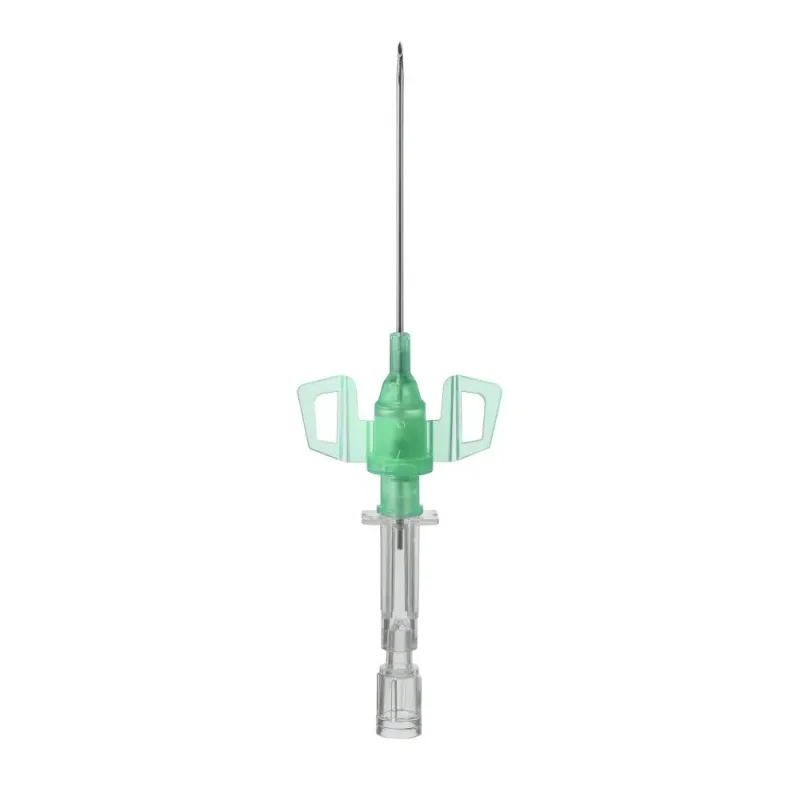 The device incorporates a multi-access blood control septum, which allows for aspiration or injection through the hub without significant blood spillage, thereby minimizing patient blood loss and maintaining a cleaner working field. Double flashback technology is integrated to provide visual confirmation of successful vein cannulation. The integrated stabilization platform, often referred to as wings, aids in securing the cannula and provides a stable anchor point during infusion or aspiration.