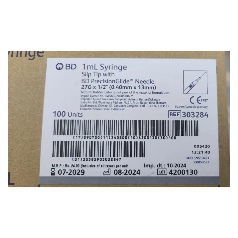 The mechanism of action involves the plunger, which moves within the barrel to draw fluid into the syringe or expel it. The 1ml volume capacity is specifically calibrated for accurate measurement of small liquid volumes, which is critical for precise dosing in various medical contexts. The slip tip connection ensures a tight seal, reducing the potential for leakage or accidental detachment of the needle during use.