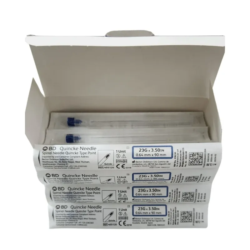 The Quincke point design of the needle is characterized by its sharp, lancet-like tip, which is intended to create a clean cut in the dural membrane, potentially minimizing the risk of post-dural puncture headache compared to other needle tip designs. The combination of material quality, precise manufacturing, and thoughtful design features aims to provide a reliable and effective tool for spinal procedures. The availability of multiple sizes and lengths ensures versatility for a broad spectrum of clinical scenarios encountered in anesthesiology and neurology.