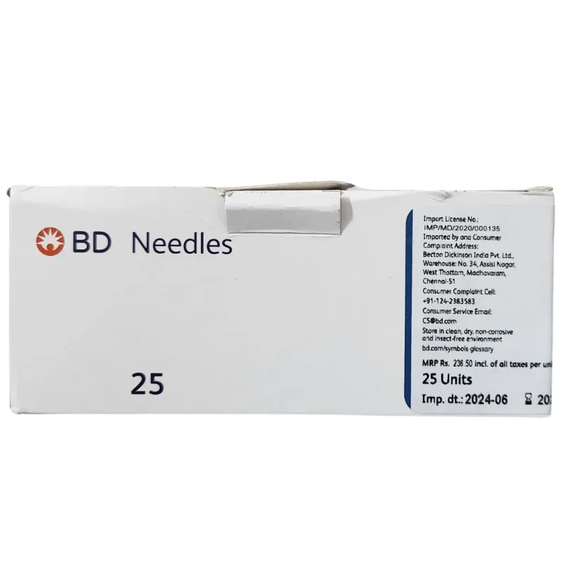The product is intended for immediate use after opening the sterile packaging and must be discarded safely after a single use to prevent accidental needlestick injuries and the spread of infection. Storage should be in a cool, dry environment, away from direct sunlight and out of reach of unauthorized individuals.
