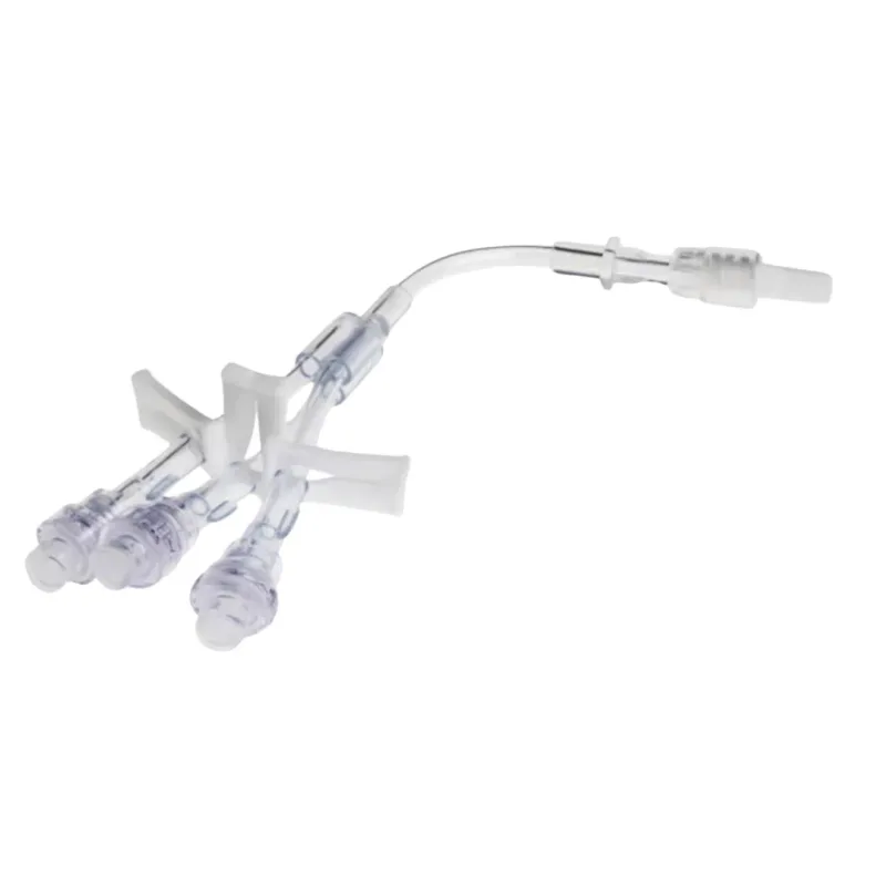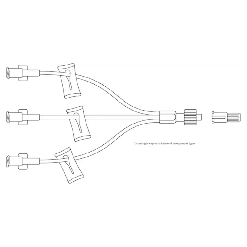 The BD Q-Syte Tri-Extension Needle-free Connector with 15 cm Macro Bore Set and Spin Nut is a medical device designed to facilitate intravenous (IV) therapy access. This device provides a closed system for fluid and medication administration, aiming to minimize the risk of microbial contamination and accidental needle-stick injuries. The connector features a split septum design that allows for luer access while maintaining a closed fluid path.