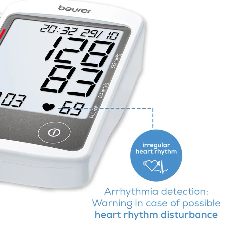 The operational mechanism involves automatic inflation and deflation of the cuff, ensuring a comfortable and efficient measurement process. The device is equipped with arrhythmia detection technology, which monitors for irregular heart rhythms during measurement. If an irregularity is detected, the monitor provides an alert, potentially serving as an early indicator of cardiac issues that warrant further medical attention.