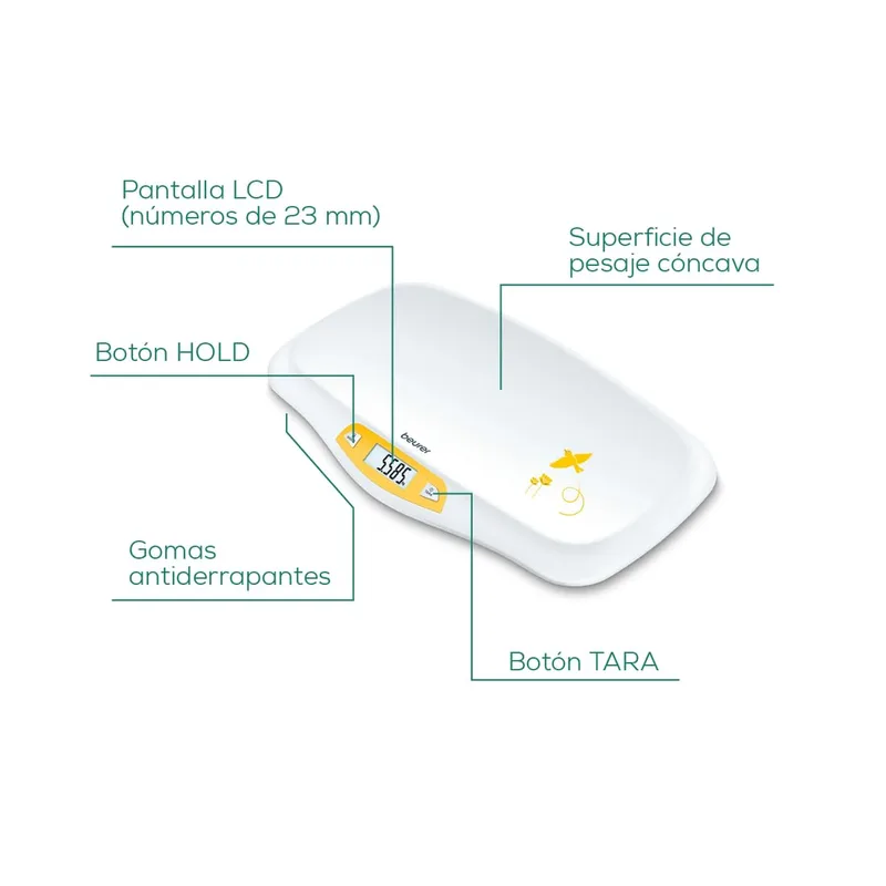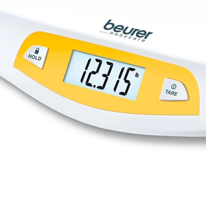 The Beurer Baby Weighing Scale is a digital instrument engineered for the precise measurement of infant weight. It is designed to accommodate newborns and infants from birth, providing accurate readings essential for monitoring growth and development. The scale features a specially designed, ergonomically contoured weighing tray that aims to provide a secure and comfortable platform for the infant during the weighing process.