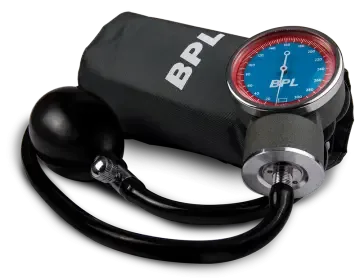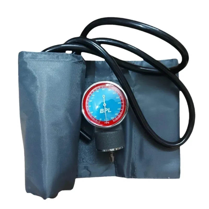 The BPL Aneroid Sphygmomanometer BP Monitor is a manual device designed for the measurement and monitoring of blood pressure. This instrument functions by utilizing an inflatable cuff, a manometer to display pressure readings, and a bulb with a valve for inflation. When the cuff is inflated around the upper arm, it temporarily restricts blood flow.