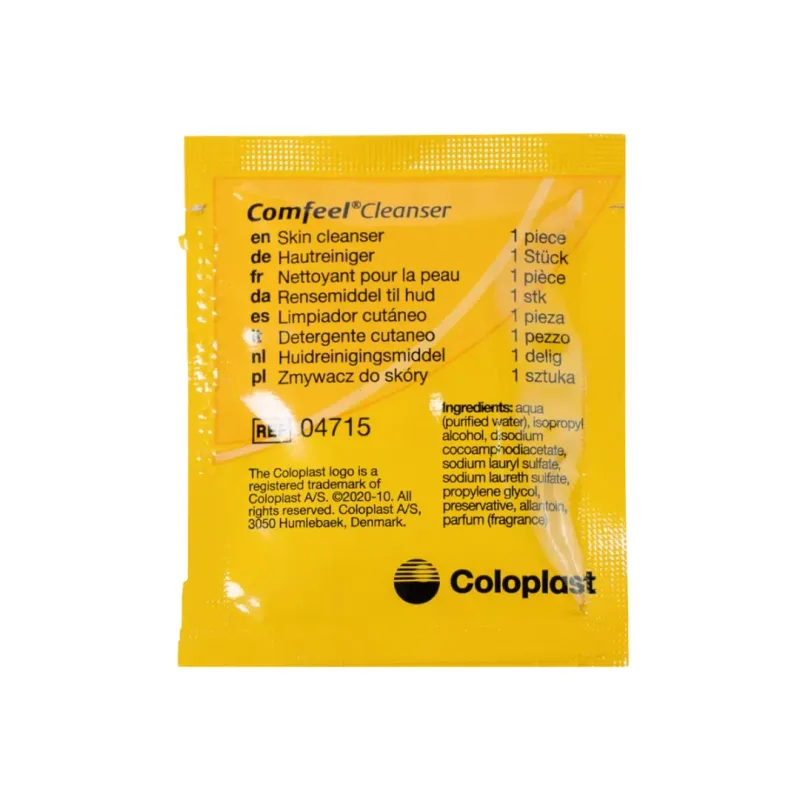 Key features of the Coloplast Comfeel Cleanser Wipes include their disposable nature, which enhances hygiene and convenience. The single-use pouch design ensures that each wipe is sterile until the moment of application. The formulation is designed to be mild yet effective, capable of removing common residues associated with ostomy output without harsh chemicals.