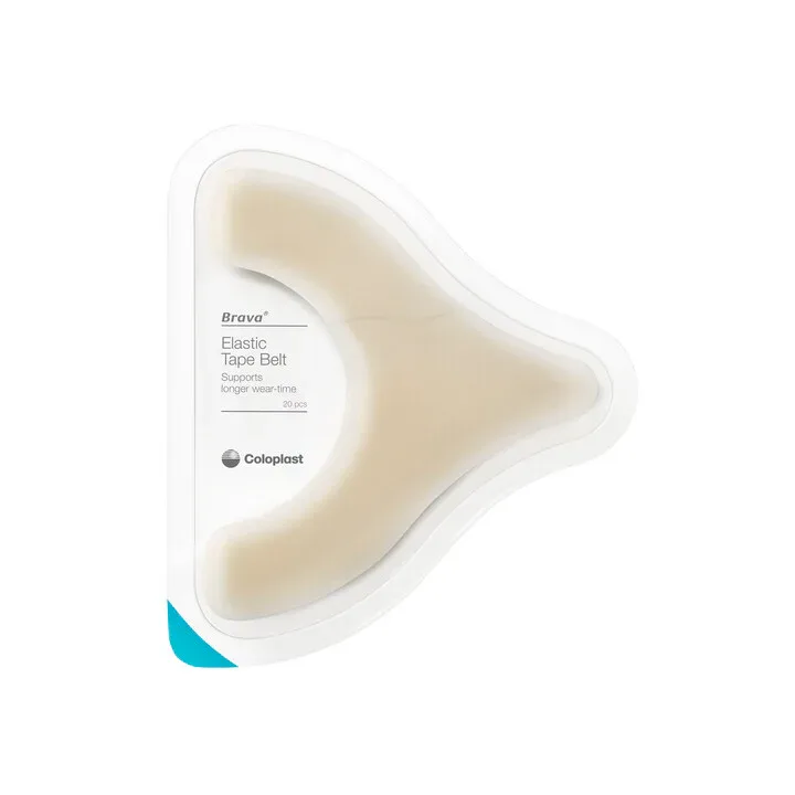 The mechanism of action for the Brava Elastic Tape Belt involves its adhesive properties and elastic construction. When applied over the perimeter of an ostomy baseplate, it creates a secure seal that reinforces the primary adhesion of the baseplate to the skin. The elasticity of the tape allows it to stretch and retract with body movements, such as bending, twisting, or coughing, thereby minimizing the mechanical stress on the baseplate's adhesive.