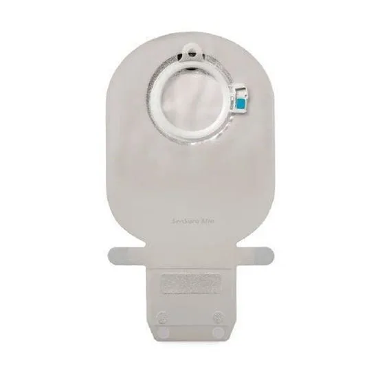 The pouch features a secure mechanical coupling system that audibly confirms attachment to a corresponding baseplate, ensuring a reliable connection. An integrated filter is incorporated into the design, which is intended to help reduce the occurrence of pouch ballooning. The pouch is designed to be emptied and reused, making it a drainable option for ostomy management.