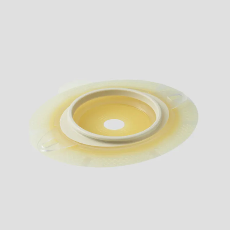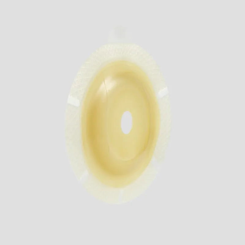 The cutting size of the adhesive barrier can be adjusted to accommodate stomas ranging from 12mm to 43mm in diameter, allowing for a customized fit. Belt ears are available on this baseplate, providing an option for additional security and support by attaching an ostomy belt.