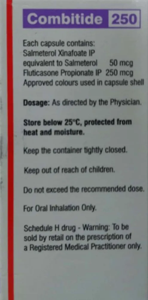 Combitide Octacap contains a steroid medicine fluticasone which reduces the swelling and irritation of airways while salmeterol helps in the widening of the air passage. Together both these medicines make breathing easy and offer relief in the symptoms of shortness of breath, difficulty in breathing, wheezing, etc. in patients with asthma and chronic obstructive pulmonary disease (COPD).