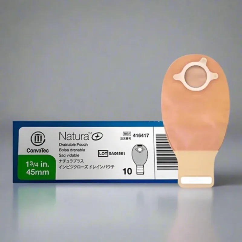 This product is a drainable ostomy pouch designed for use with a two-piece ostomy system. It features a 45mm flange size, accommodating a corresponding skin barrier. The pouch itself is 12 inches in length and constructed with a two-sided comfort panel for enhanced wearability.