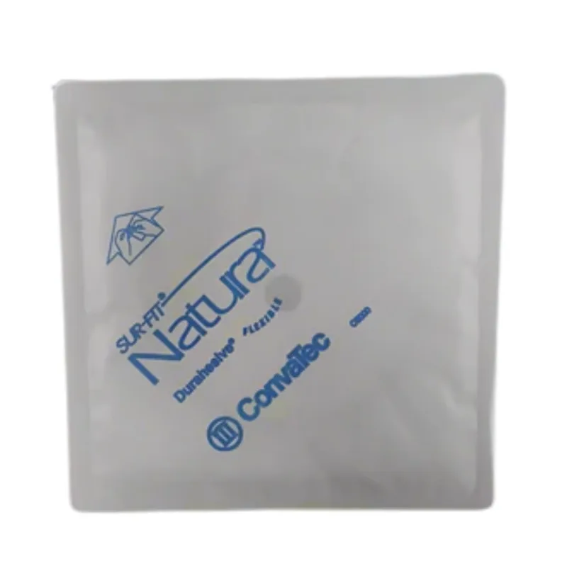 The ConvaTec 413162 Natura Sur-Fit Durahesive Flexible Plate is a component of a two-piece ostomy management system. This skin barrier is designed to adhere to the skin surrounding a stoma, providing a protective interface between the stoma and an external ostomy pouch. The system utilizes a flange mechanism that connects the skin barrier to the ostomy pouch, allowing for independent application and removal of each component.
