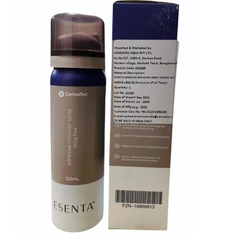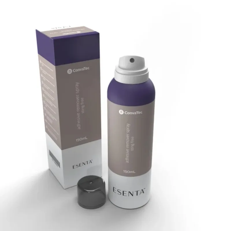 Important usage notes involve applying the spray around the perimeter of the adhesive and allowing a brief waiting period before attempting removal. Gentle peeling is recommended. It is important to ensure the skin is dry after removal, as the formulation is designed not to interfere with the adhesion of new dressings or appliances.
