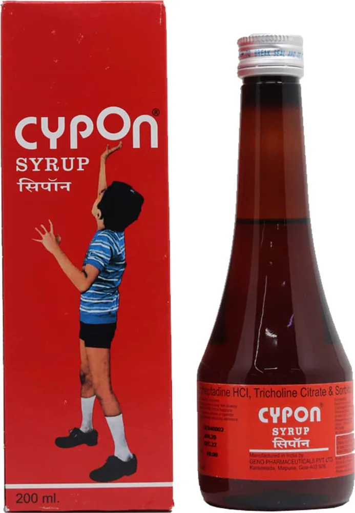 Cypon Syrup is an appetite stimulant used to treat lack of appetite and weight loss. It contains Cyproheptadine and Tricholine which work by inhibiting the activity of serotonin, an appetite suppressant.