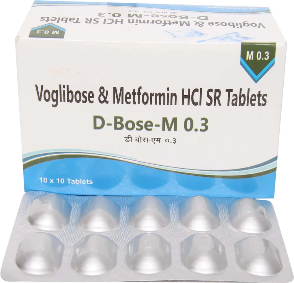 D Bose M tablet is used to treat type 2 diabetes. It is a combination of metformin and voglibose, which helps lower elevated blood sugar levels. It is important to take this medication as prescribed by your doctor for the specified duration.