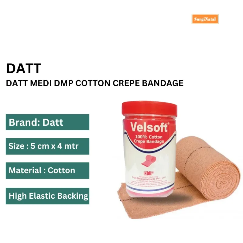 The Datt Medi DMP Cotton Crepe Bandage is a medical textile designed for providing compression and support in various healthcare applications. This bandage is constructed from 100% medical-grade cotton, offering a breathable and comfortable material suitable for prolonged wear. Its inherent elasticity allows it to conform to body contours, providing consistent pressure without restricting circulation when applied correctly.