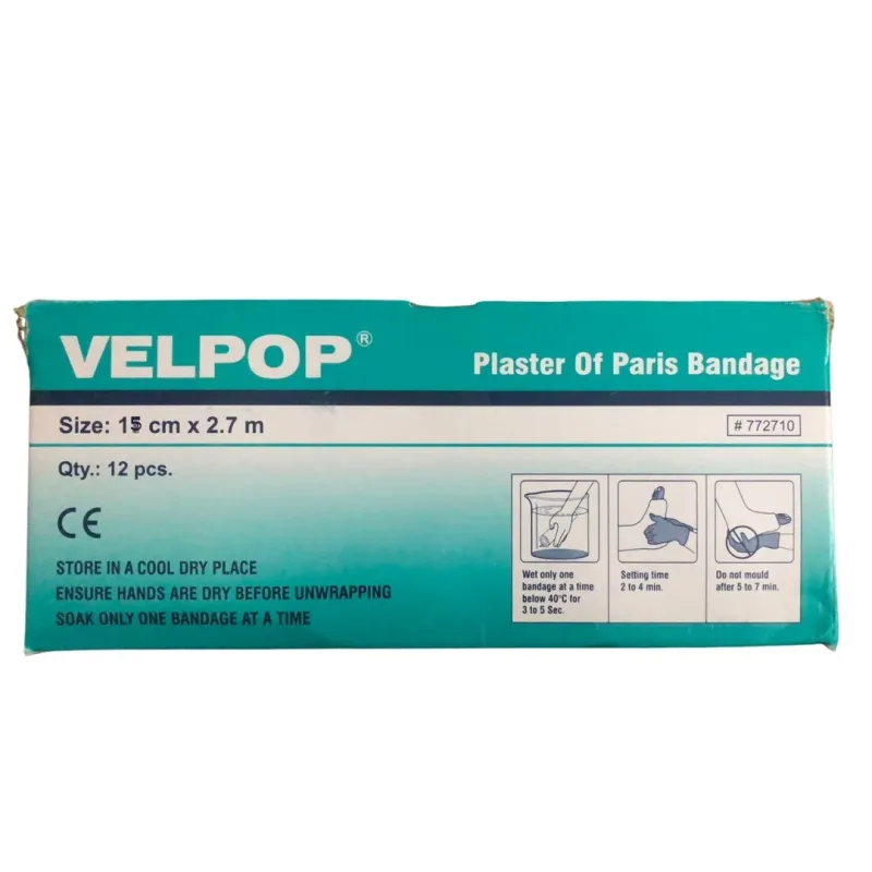 7 meters in length, providing sufficient material for various orthopedic applications. The material composition ensures a balance between rigidity and conformability once set, facilitating proper anatomical alignment and support. The packaging is designed to be moisture-resistant, preserving the integrity of the Plaster of Paris until the point of use.