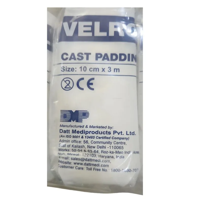 The Datt Medi Velroll Cast Padding is a medical textile designed for use in orthopedic applications. It is constructed from 100% surgical-grade viscose, a material chosen for its absorbency and softness. This padding serves as a protective layer beneath orthopedic casts and compression bandages, specifically targeting bony prominences to prevent discomfort and potential injury.