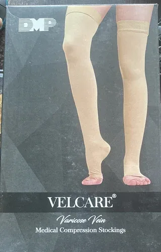 The Datt Varicose Vein Compression Stocking is a medical device designed to provide graduated compression to the legs. It is constructed from a blend of 70% medical-grade nylon and 30% spandex, offering a combination of durability and flexibility. The stocking is available in beige and comes in various sizes, including Below Knee options (Small, Medium, Large, Extra Large) and Full Leg options (Small, Medium, Large, XL).