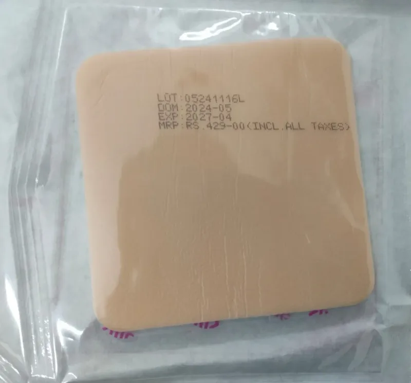 The Datt Velfix-s Dressing is a sterile, absorbent wound dressing designed for the management of exuding wounds. It is constructed from multiple layers, including a soft polyurethane foam pad that provides cushioning and absorption. The wound contact layer is composed of a gentle silicone adhesive, specifically formulated to adhere to intact skin surrounding the wound without adhering to the wound bed itself.