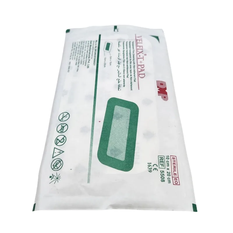 The Datt Velfix-T+Pad functions by creating a semi-permeable barrier over the wound. The polyurethane film is both waterproof, protecting the wound from external contaminants and moisture, and breathable, allowing for the passage of water vapor. This breathability is quantified by a high moisture vapor transmission rate (MVTR) of 2685 GSM/24 hours, which helps to prevent the accumulation of excess moisture at the wound site, thereby reducing the risk of maceration and promoting a healthier healing environment.