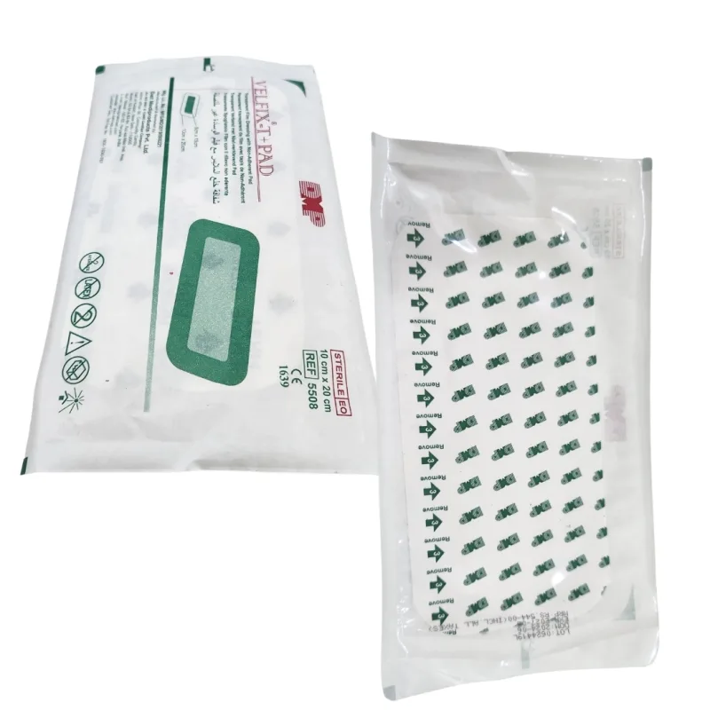 Key features of the Datt Velfix-T+Pad include its waterproof and breathable bacterial barrier, which shields the wound from external pathogens and moisture while allowing for moisture vapor escape. The dressing's ability to conform to body contours enhances patient comfort, particularly in high-movement areas. It is suitable for wounds exhibiting light to moderate levels of drainage, effectively managing exudate with its absorbent pad.