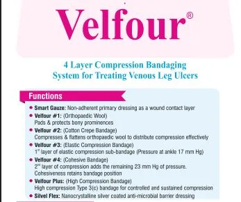 Key features of the Datt Velfour system include its four-layer construction, which delivers approximately 40 mmHg of high sustained compression at the ankle, gradually decreasing to around 17 mmHg at the knee. This sustained compression is maintained for up to one week, minimizing the need for frequent bandage changes. The system incorporates an orthopaedic wool layer, which serves to protect bony prominences from excessive pressure, thereby enhancing patient comfort and safety.