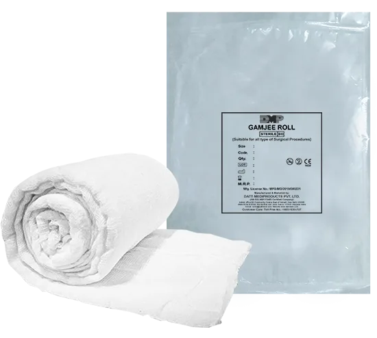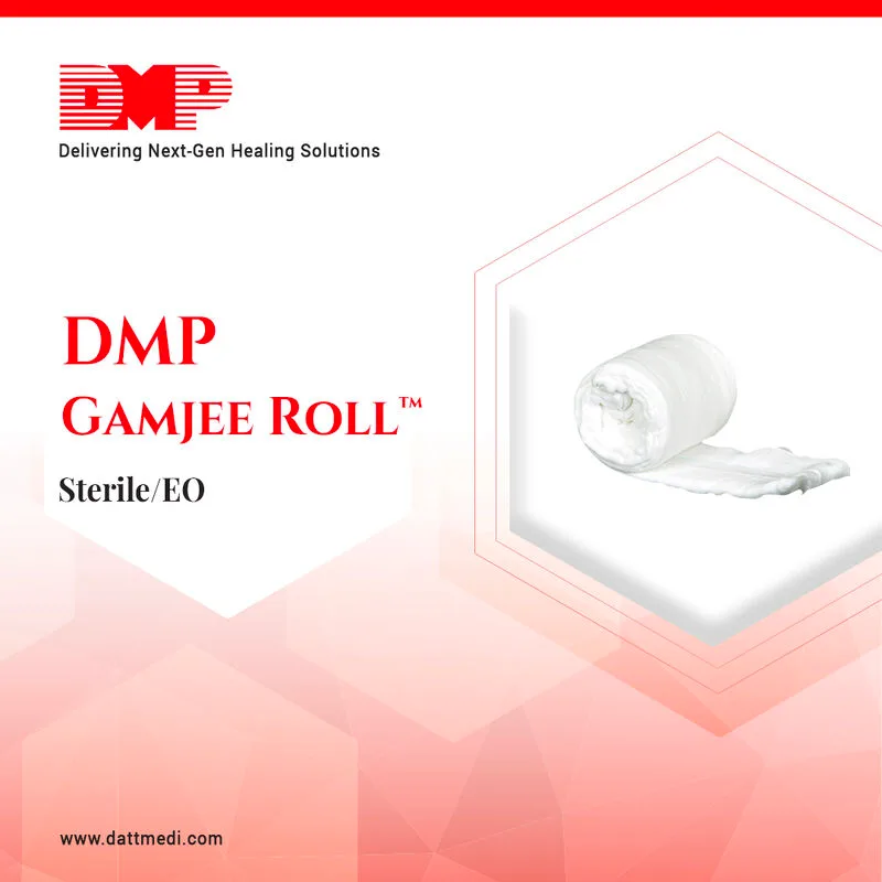 The DATT Gamjee Roll - Sterile is a medical dressing designed for wound care applications. It consists of a core of absorbent medical-grade cotton that is encased within a layer of woven gauze. This construction is then rolled for ease of application and storage.