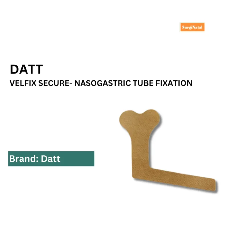 The dual tabs are positioned to provide a stable anchor for the tube. In the event of any signs of skin irritation or adverse reaction, the device should be removed, and medical advice sought. The product is supplied in a beige, skin-colored, non-woven material and is available in unilateral and double configurations.