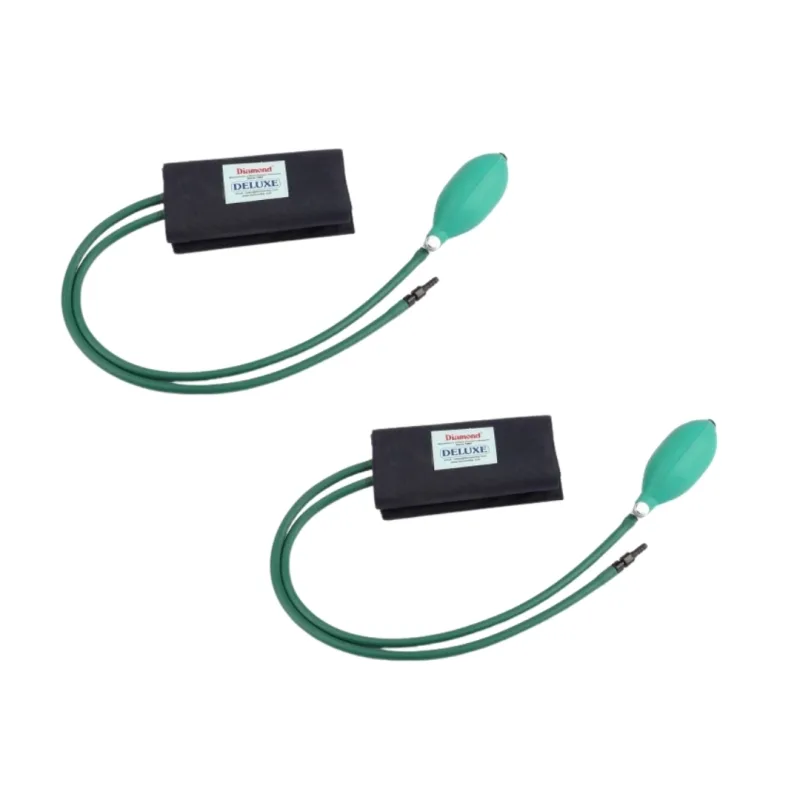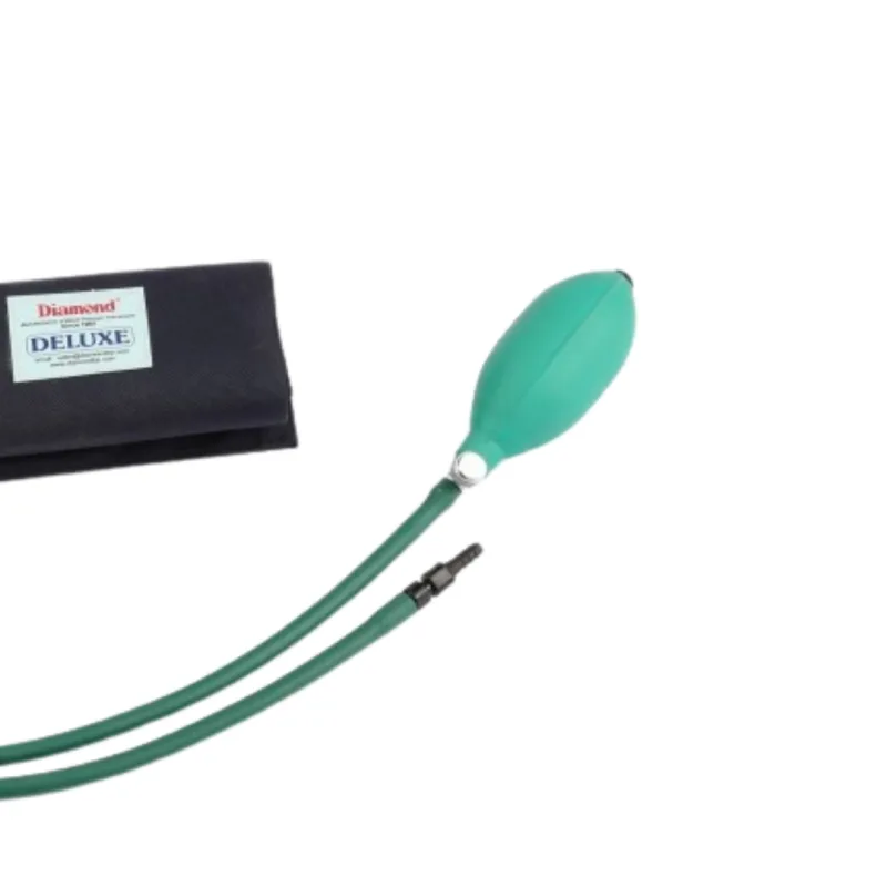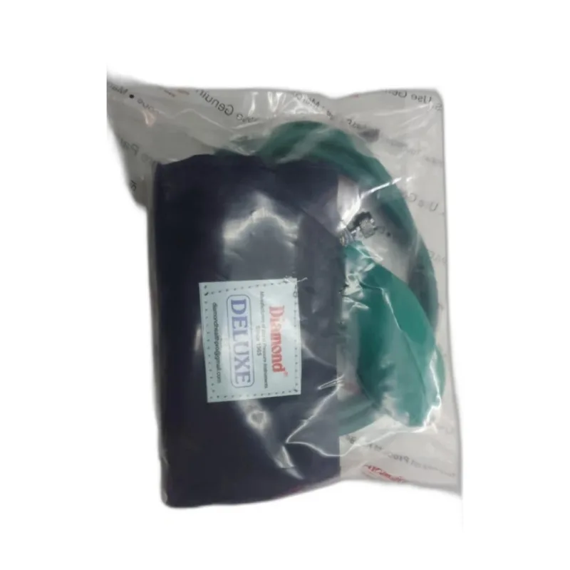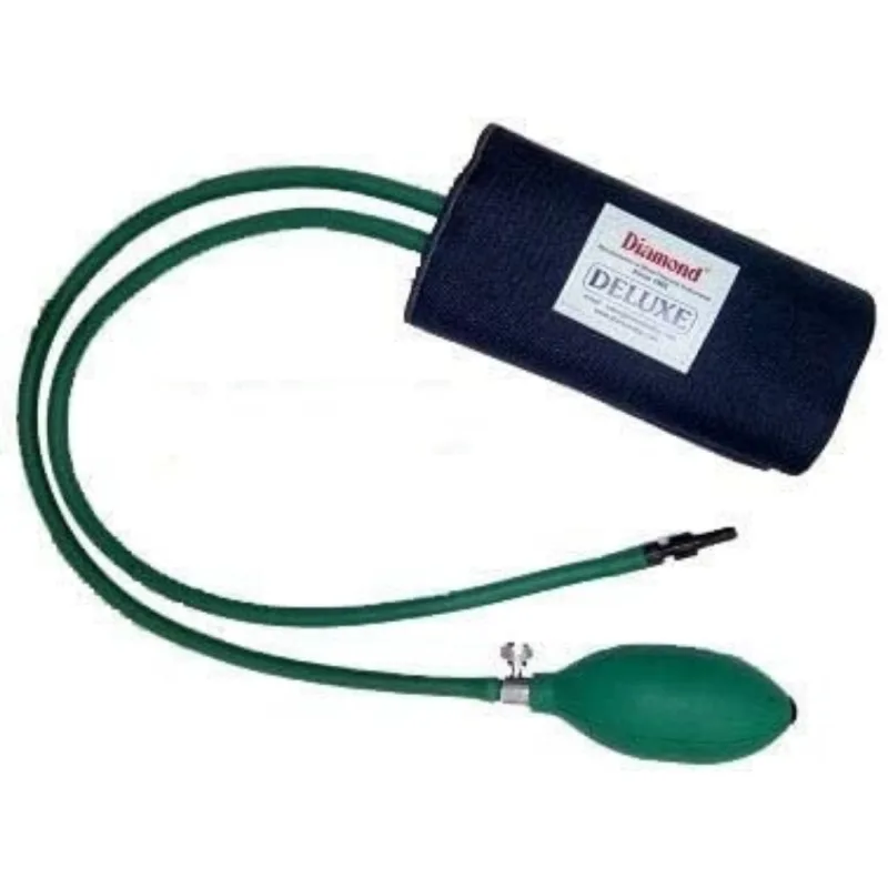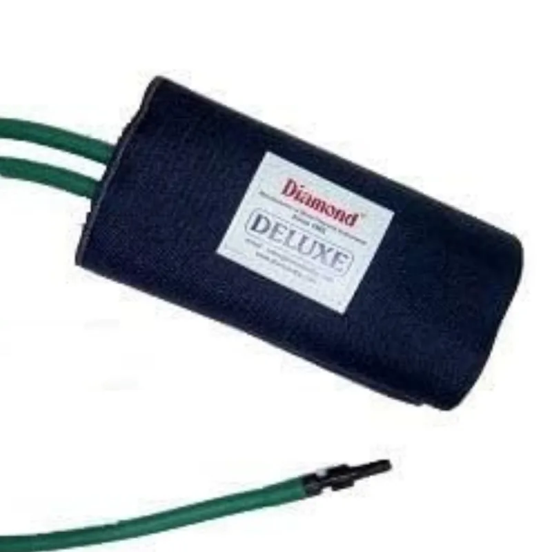 The Diamond BP Cuff Set - BC5030 - Deluxe is a component designed for use with non-invasive blood pressure monitoring devices. This set comprises a durable cloth cuff, an internal rubber bladder, and associated tubing and connectors. The cuff is constructed from medical-grade material, intended for repeated use in clinical and home settings.