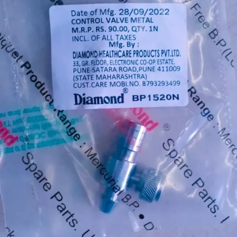The Diamond Control Valve Metal (BP1520N) is a component designed for precise regulation of fluid or gas flow. Constructed from medical-grade metal, this valve offers durability and resistance to wear, ensuring consistent performance in demanding environments. Its design facilitates accurate control over flow rates and pressure, making it suitable for applications where reliability is paramount.