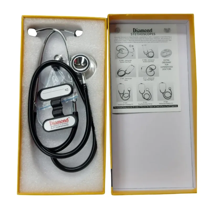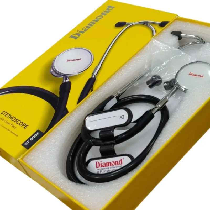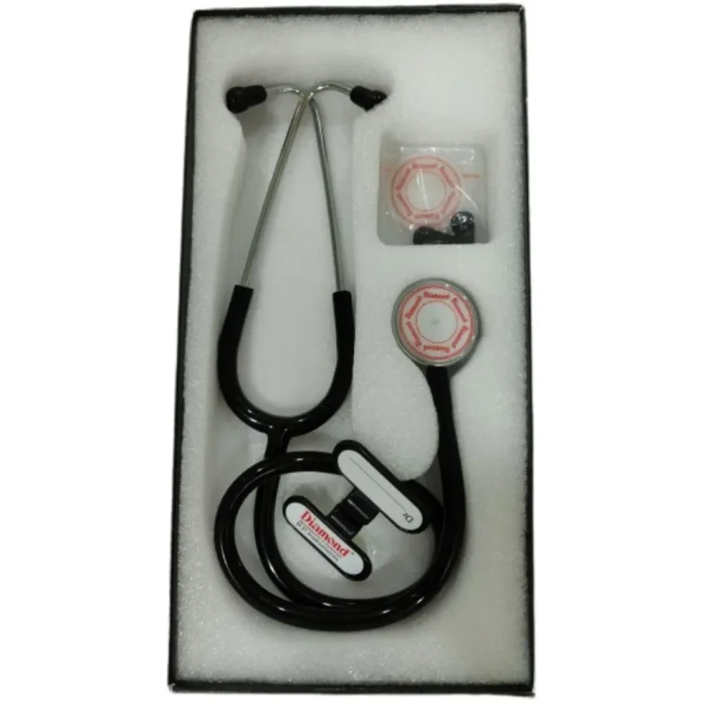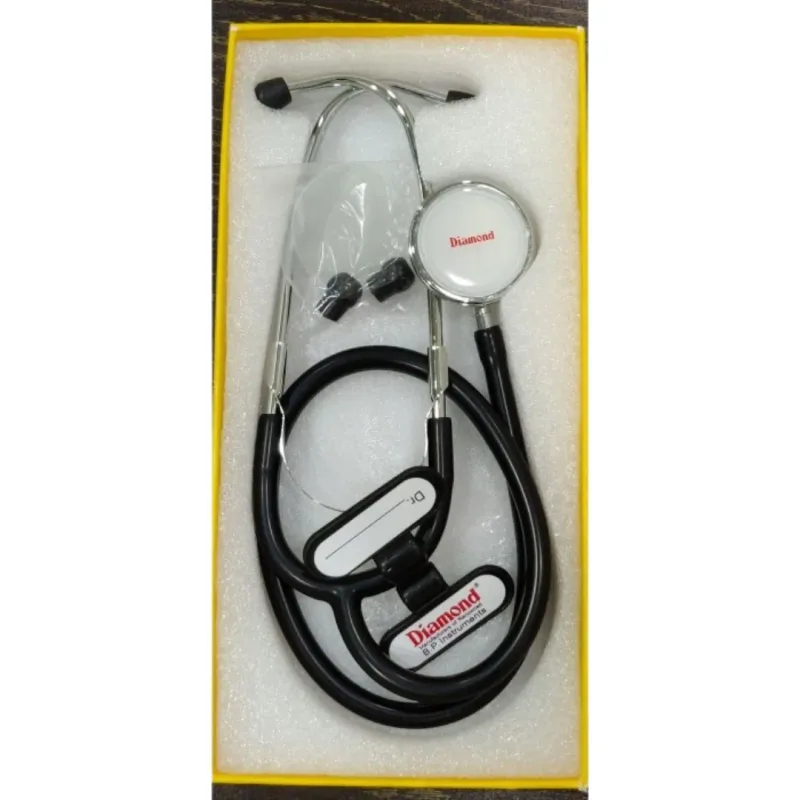The Diamond Stethoscopes (ST 0006) are acoustic medical devices designed for auscultation, the process of listening to internal body sounds. This model is specifically engineered to facilitate the clear and precise assessment of cardiopulmonary sounds and other internal bodily functions. The instrument is constructed with medical-grade materials, ensuring both durability and appropriate performance for clinical environments.
