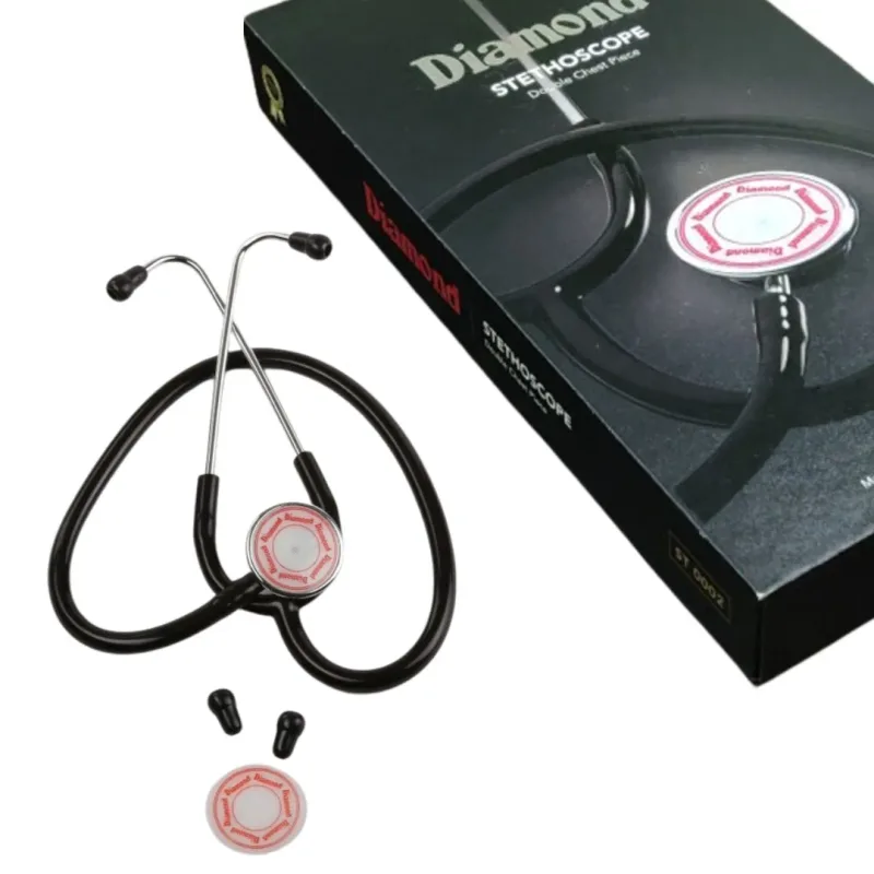Typical applications for the Diamond Stethoscope (ST 0002) include general physical examinations, cardiac assessments to listen for heart murmurs and rhythm irregularities, pulmonary assessments to evaluate lung sounds such as crackles, wheezes, and diminished breath sounds, and abdominal assessments to monitor bowel sounds. It can be used in various healthcare settings, including hospitals, clinics, private practices, emergency medical services, and educational institutions. The dual-head design makes it adaptable for listening to a broad spectrum of sounds encountered in routine patient care and more specialized diagnostic procedures.