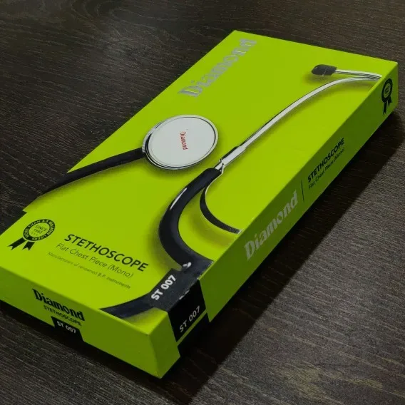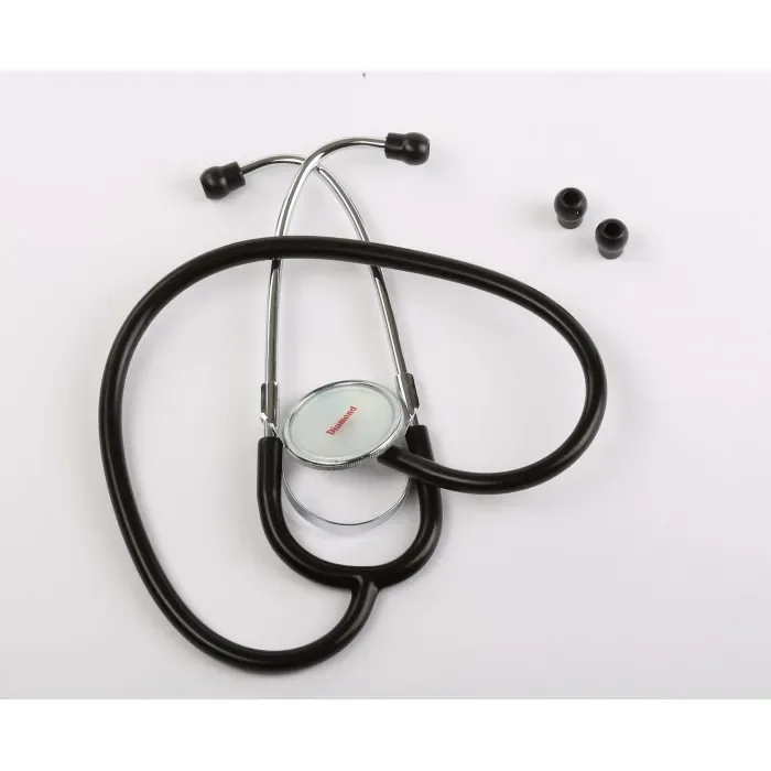 The Diamond Stethoscope ST007 is a diagnostic acoustic instrument designed for auscultation, the process of listening to internal body sounds. It is engineered to facilitate the clear transmission of sounds from the patient's body to the listener's ears, enabling the assessment of various physiological functions. This model is particularly suited for routine clinical examinations and is a common tool in healthcare settings for its functional design and accessibility.
