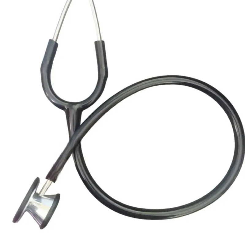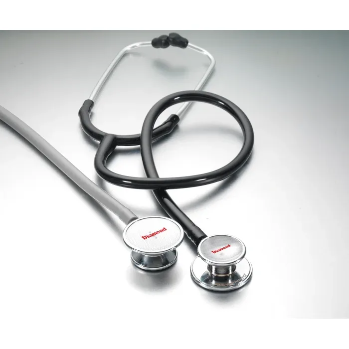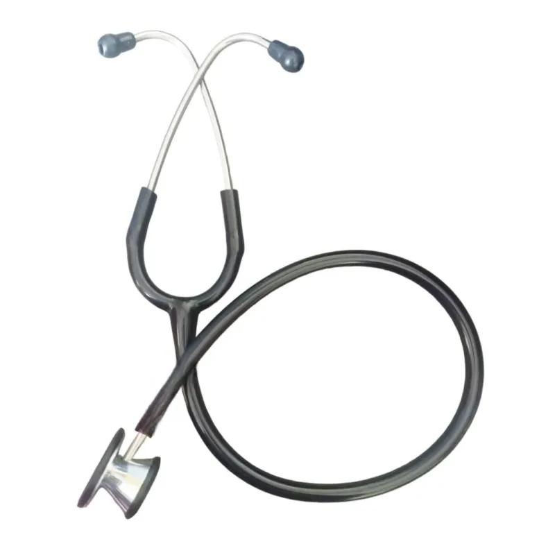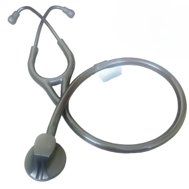 The dual-sided design incorporates distinct diaphragms for adult and pediatric patients, allowing for efficient transition between age groups during examinations. The overall construction emphasizes acoustic sensitivity to support precise diagnostic evaluations. The tubing is available in a selection of five colors: black, blue, grey, green, and burgundy, offering a degree of personalization.
