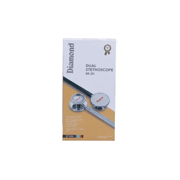 The ST032 Dual Stethoscope (BR 2D) is a diagnostic instrument designed for acoustic auscultation. It features a dual-sided chestpiece constructed from premium brass, a material selected for its acoustic resonance and inherent durability. This stethoscope is engineered to provide clear and accurate sound transmission, facilitating the assessment of various bodily sounds.