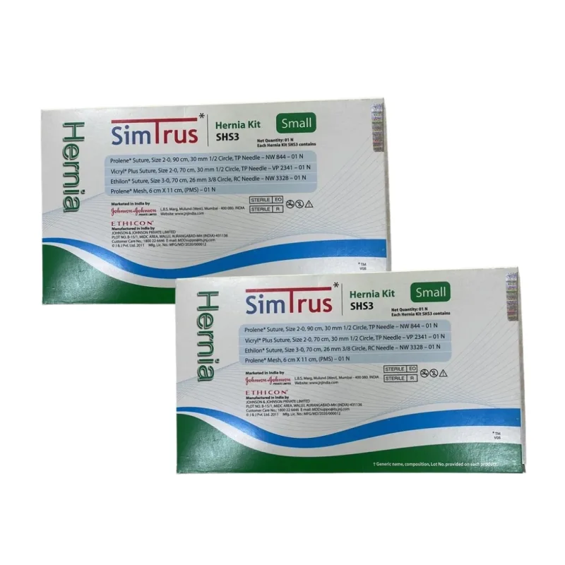The Ethicon Johnson - SHS3 - Hernia Kit SHS3 Small is a sterile surgical kit designed for the posterior repair of inguinal hernias. This comprehensive kit provides essential components for a secure and effective surgical intervention, aiming to reinforce the abdominal wall and prevent recurrence. The kit is intended for use by trained medical professionals in a surgical setting.