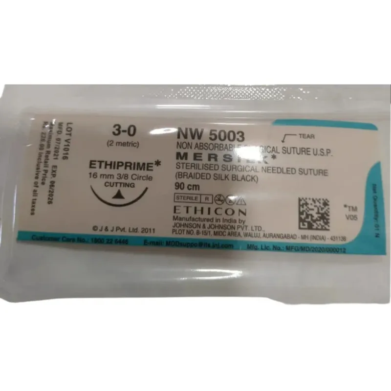 This product is a type of non-absorbable surgical suture designed for tissue approximation and ligation in various medical procedures. The suture material is a monofilament polyamide, also known as Mersilk, which is engineered to provide enduring tissue support. Its non-absorbable nature means it remains in the body indefinitely, making it suitable for applications where long-term structural integrity is required.