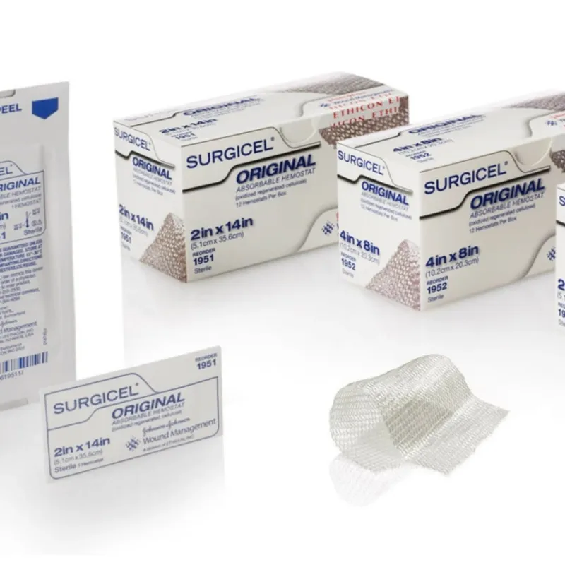 Ethicon Surgicel Absorbable Hemostat is an advanced oxidized regenerated cellulose (ORC)-based hemostatic agent used to effectively control bleeding during surgical procedures.